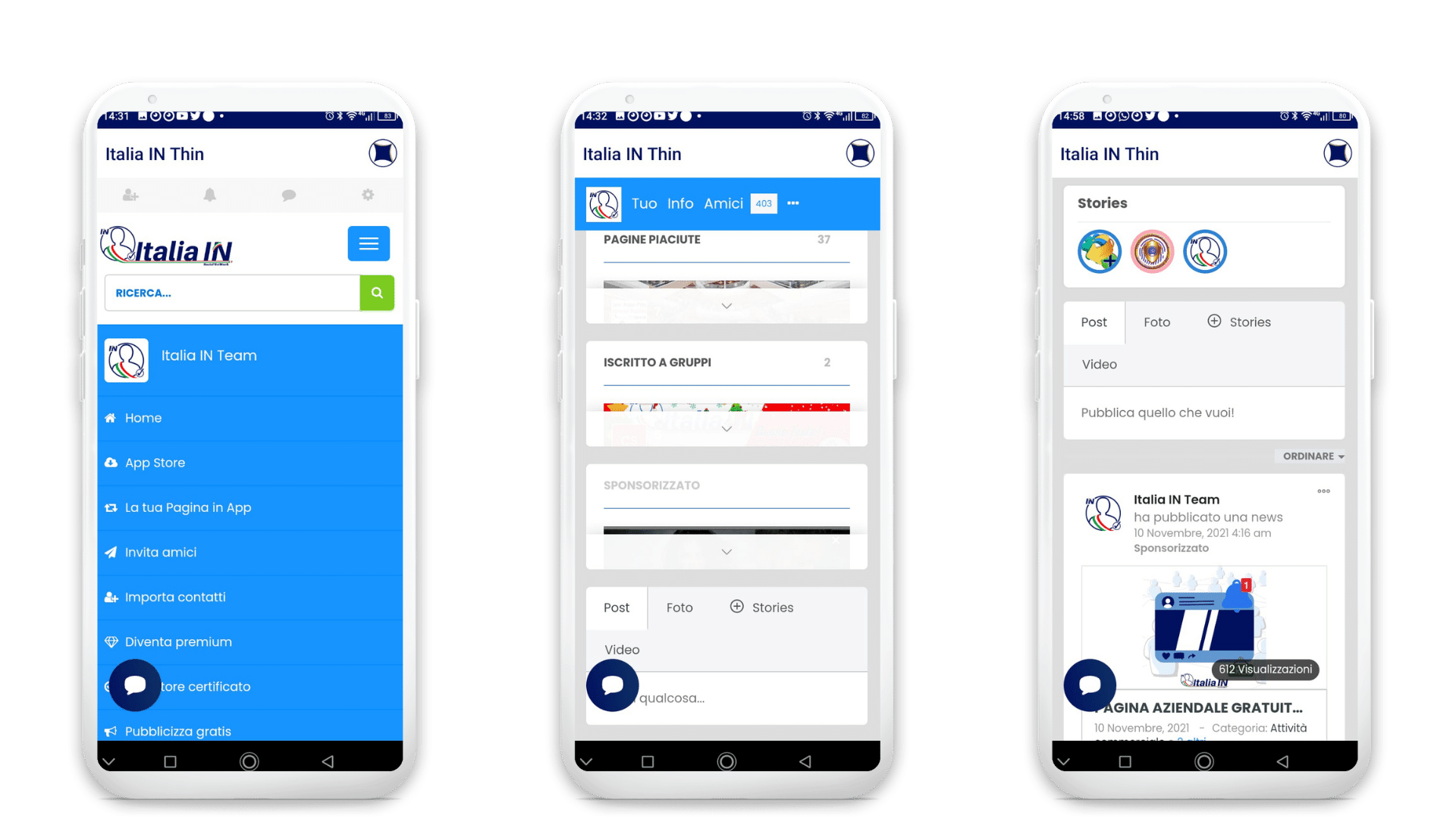 Italia IN la trovi anche nelle sue versioni light (android version) e desktop (PWA/iOS version) oppure puoi utilizzare Italia IN Social NetWork da browser con il tuo PC.